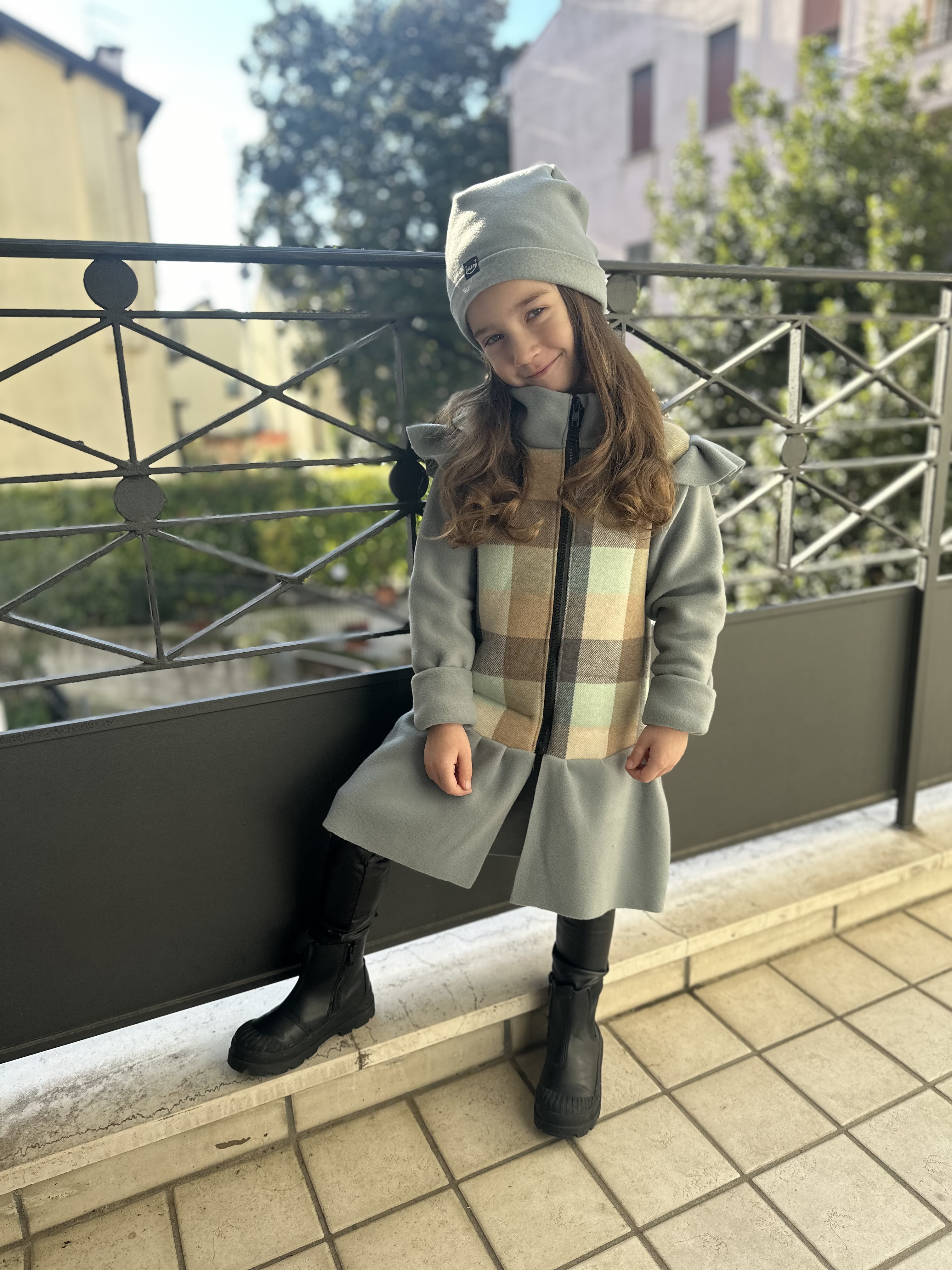 KOSTKA - tělo kabátku je z krásné 3 vrstvé látky Bavlna - zateplení polyester ( pěna ) a další vrstva bavlny , rukávy , stojáček a sukýnka jsou z krásného hrubého fleecu , zadní dílem do oblouku pro zachování dokonalého tepla vašich ratolestí:-),