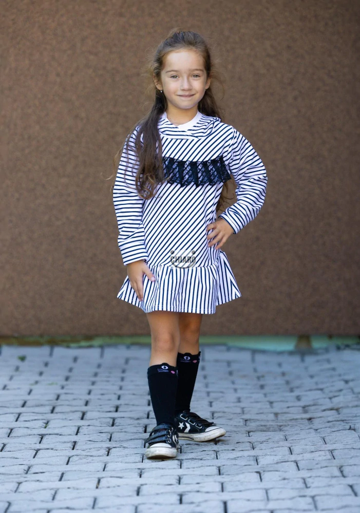 PRUH - Stylové rostoucí teplákové šaty     přední díl zdobený černou krajkou, stylovou kapucí, velkým volánem tvořícím sukýnku Rostoucí manžety dodají do délky dalších 6cm       Složení :  96% Bavlna 4% Elastan  - výplněk / teplákovina nepočesaná, gramáž 230gsm Modelka má 113cm a má na sobě veliko... celý popis